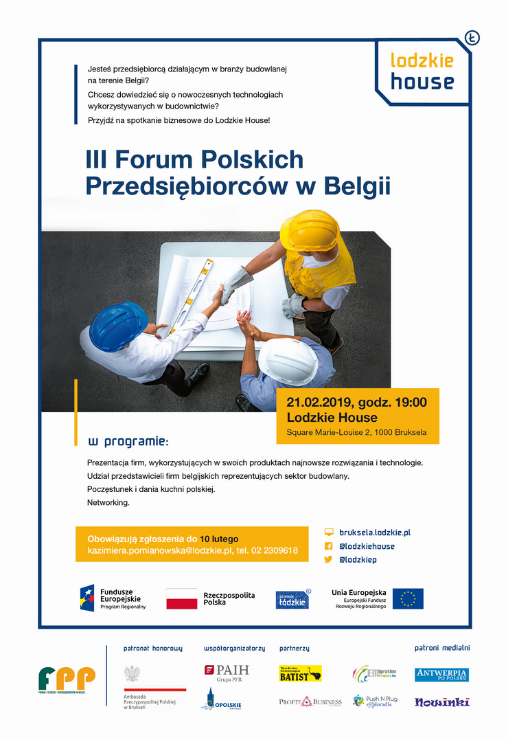 To jedno z najważniejszych, zagranicznych wydarzeń kierowanych do polskich firm z branży budowlanej. W tym roku odbędzie się 21 marca o godz. 19.00 w Lodzkie House w Brukseli (szczegóły na plakacie).