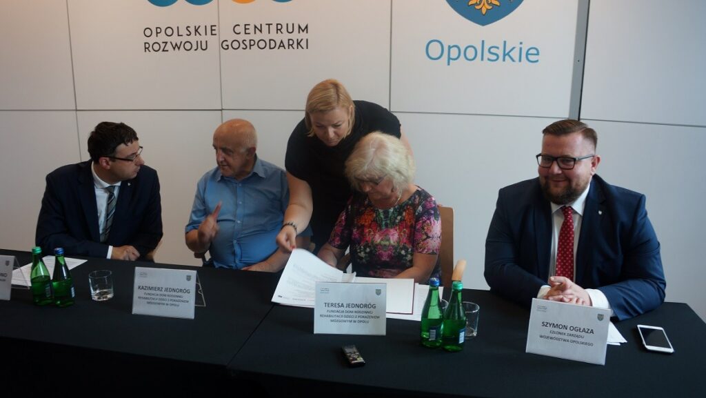 6 lipca w imieniu Fundacji „Dom” Teresa i Kazimierz Jednorogowie podpisali umowę z podlegającym samorządowi województwa Opolskim Centrum Rozwoju Gospodarki (OCRG) na dofinansowanie swojego projektu. W jego ramach za 246 tys. zł Fundacja kupi do działającego w jej ramach, a zatrudniającego obecnie 60 niepełnosprawnych Zakładu Aktywności Zawodowej, kilka urządzeń. Będą to: ploter drukująco-tnący do poligrafii, maszyna drukująca, maszyna do przerobu gliny, nowoczesny piec do ceramiki, półautomat i tunel wygrzewający do sitodruku, a także klimatyzatory i agregat chłodzący.