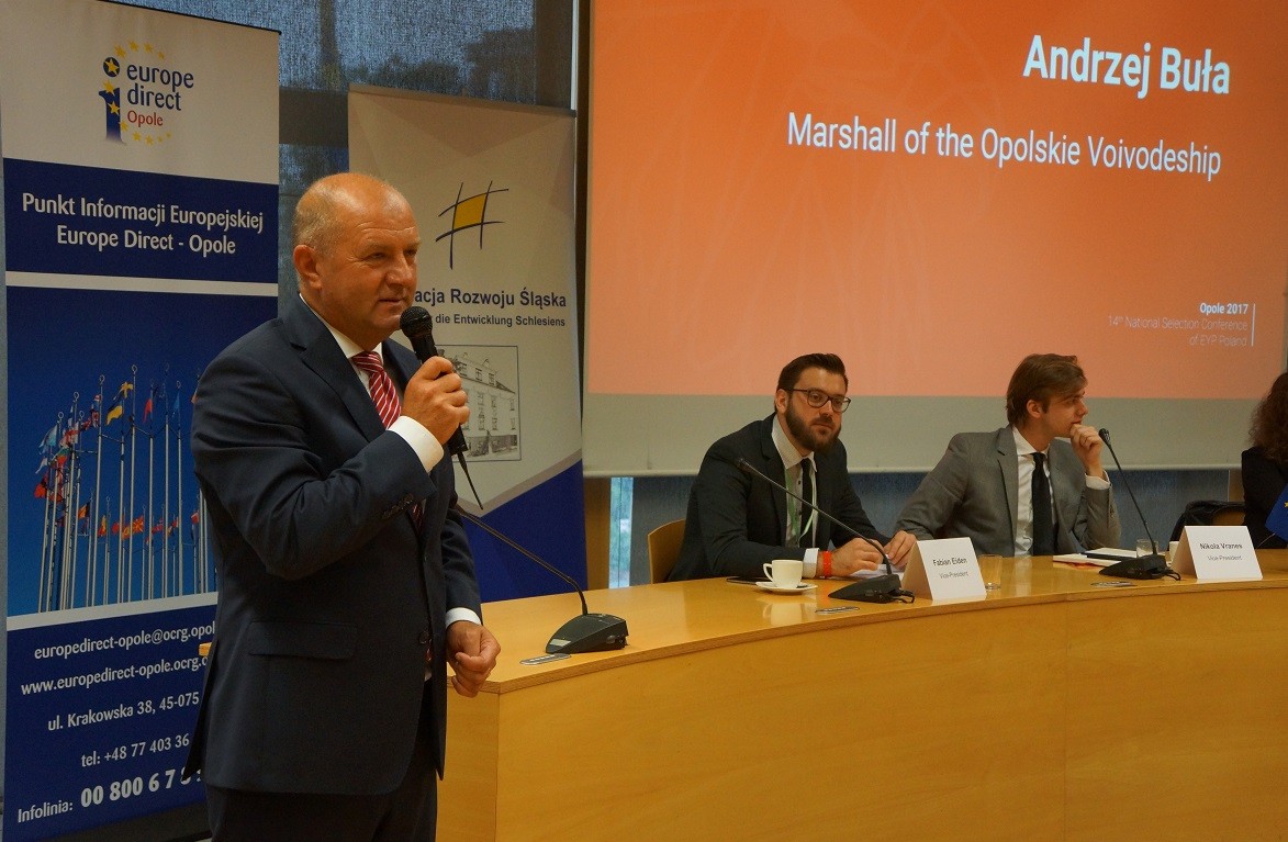 Na Opolszczyznę na sesję Europejskiego Parlamentu Młodzieży (EYP) przyjechało ok. 200 młodych ludzi z Polski, Europy i innych krajów świata, m.in. z Serbii, Holandii, Włoch, Grecji, Szwecji, Wielkiej Brytanii, Francji, Portugalii, Ukrainy czy Armenii. Rozmawiają m.in. delegowaniu pracowników, mniejszościach narodowych, sprawach gospodarki, edukacji i kultury czy mediacjach. Uczą się też procesów demokratycznych i dochodzenia do kompromisu. Urząd Marszałkowski Województwa Opolskiego, podlegające mu Opolskie Centrum Rozwoju Gospodarki (OCRG) i działający w ramach OCRG Punkt Informacji Europejskiej Europe Direct Opole są partnerami głównymi wydarzenia.