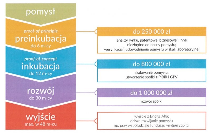 Polski Instytut Badań i Rozwoju wraz z Narodowym Centrum Badań i Rozwoju prowadzi nowatorski program inwestycyjny dla start-upów oraz ludzi z ciekawymi pomysłami, który weryfikuje pomysły oraz finansuje realizację realizację proof-of-concept dalszego ich rozwoju w zakresie prac badawczo-rozwojowych. PIBiR udziela pomocy do momentu przekształcenia projektu w podmiot – samodzielną spółkę. W następnym etapie, spółki te będą rozwijane przy współudziale funduszy typu venture capital.