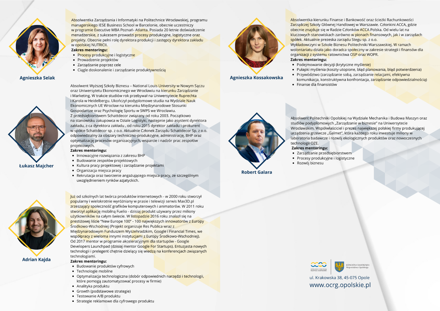 – Czerpanie z wiedzy i doświadczenia wybitnych ludzi biznesu z naszego regionu to rzecz nie do przecenienia. Cieszymy się, że w tegorocznej edycji grono mentorów powiększyło się o nowe osoby, dzięki czemu zakres tematyczny VIII edycji programu jest jeszcze szerszy – dodaje Michał Wojczyszyn, zastępca dyrektor OCRG
