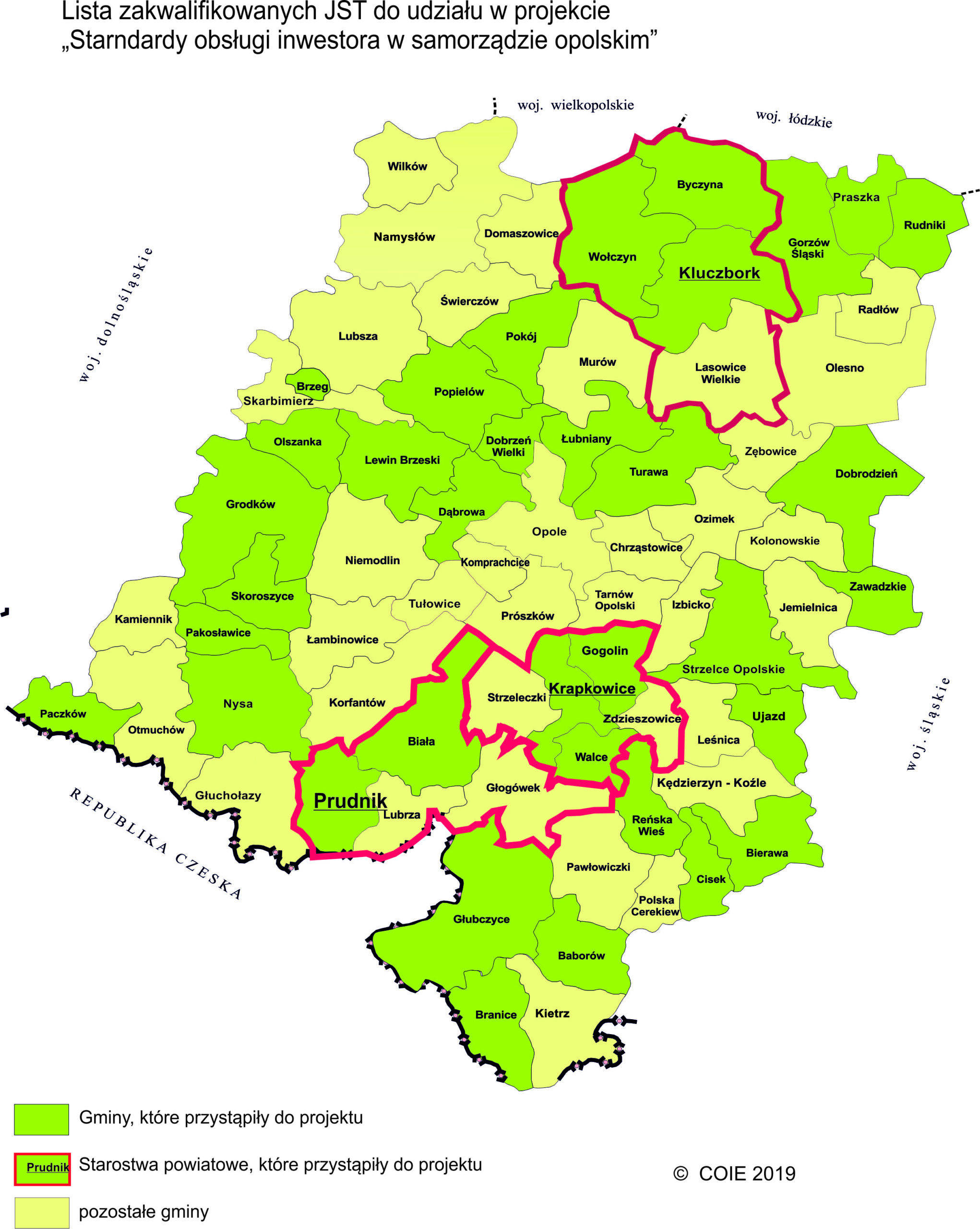 Projekt „Standardy obsługi inwestora w samorządzie opolskim” realizowany jest przez podlegające samorządowi województwa Opolskie Centrum Rozwoju Gospodarki (OCRG) na podstawie umowy o dofinansowanie zawartej pomiędzy Województwem Opolskim a Ministrem Spraw Wewnętrznych i Administracji. Celem tego projektu jest podniesienie jakości obsługi inwestora w jednostkach samorządu terytorialnego (np. gminy, powiaty).
