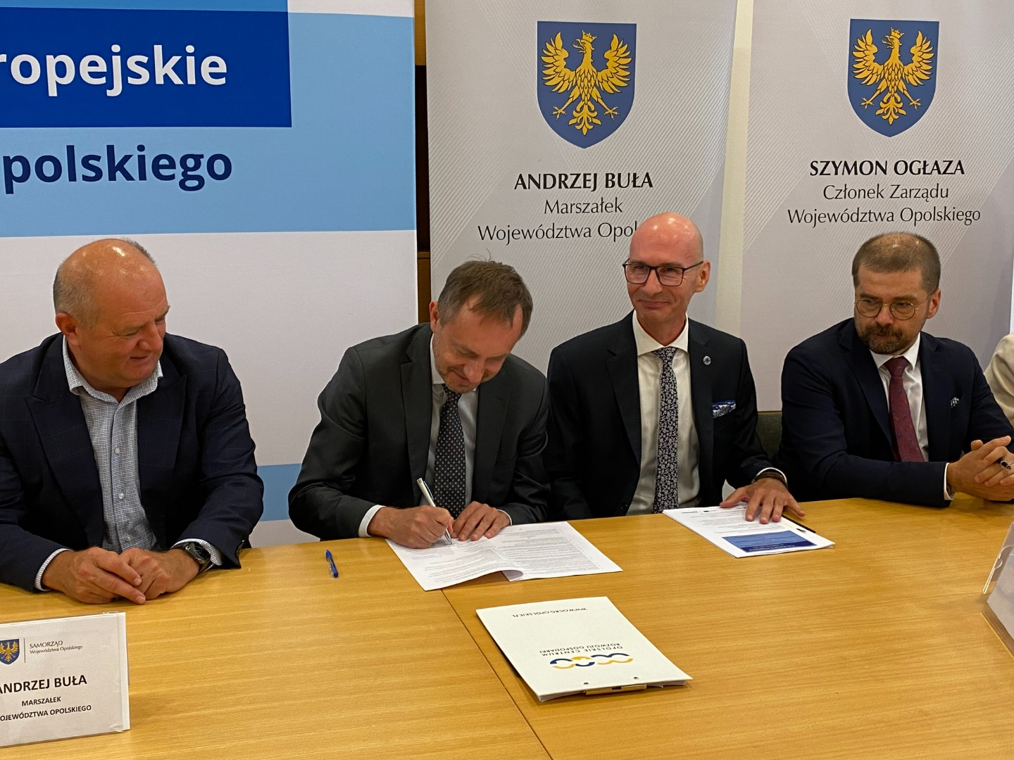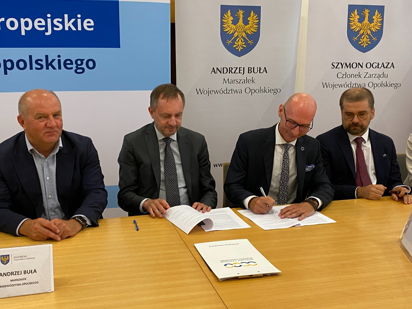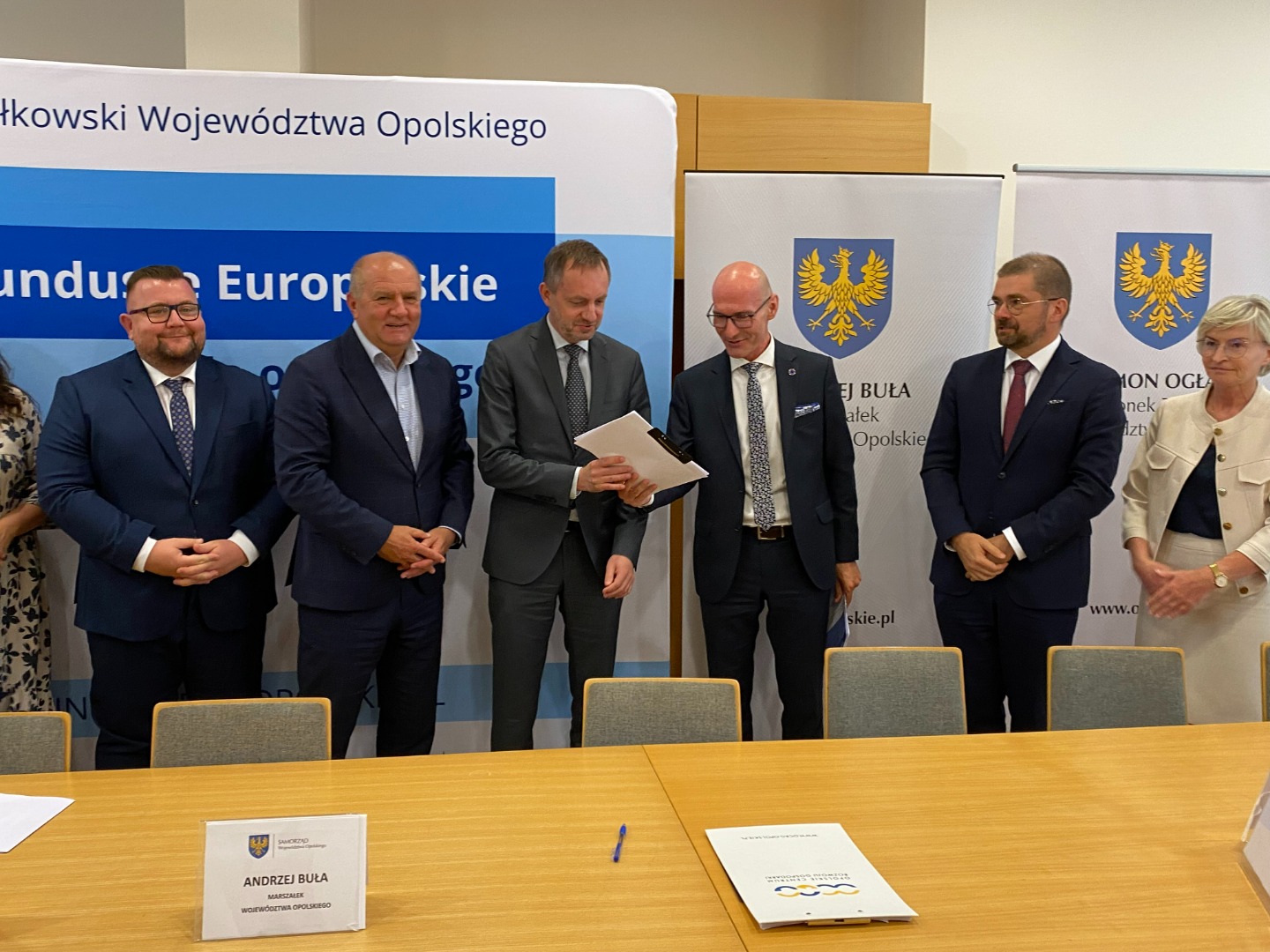W uroczystym podpisaniu umowy, które odbyło się 31 lipca w sali konferencyjnej im. Znaku Rodła w Urzędzie Marszałkowskim Województwa Opolskiego, udział wzięli: