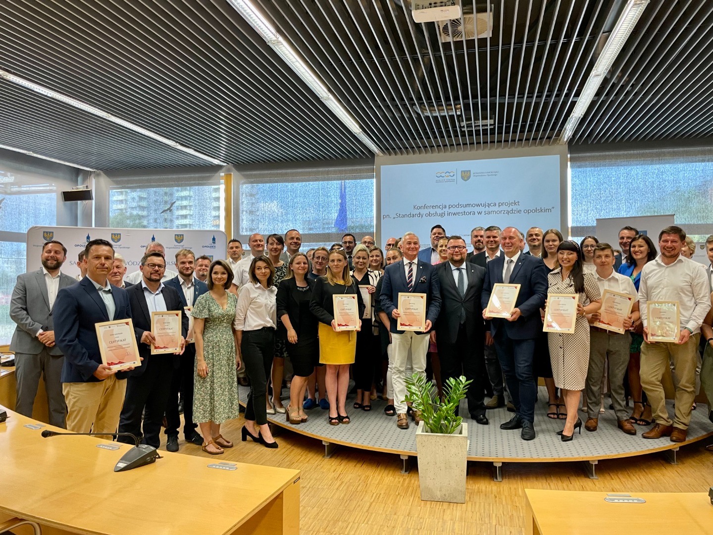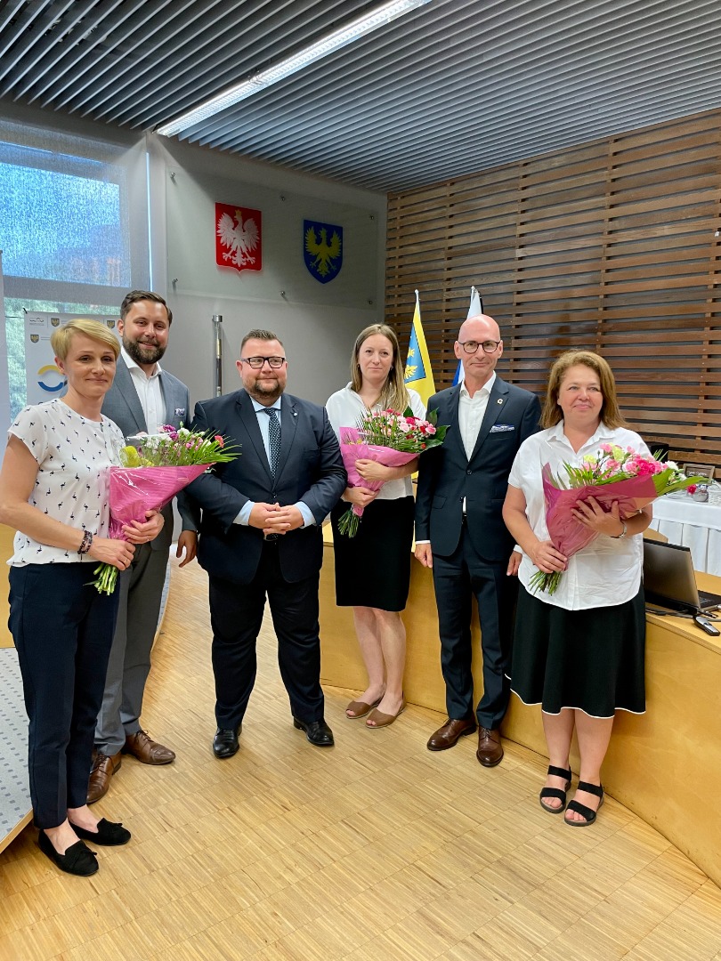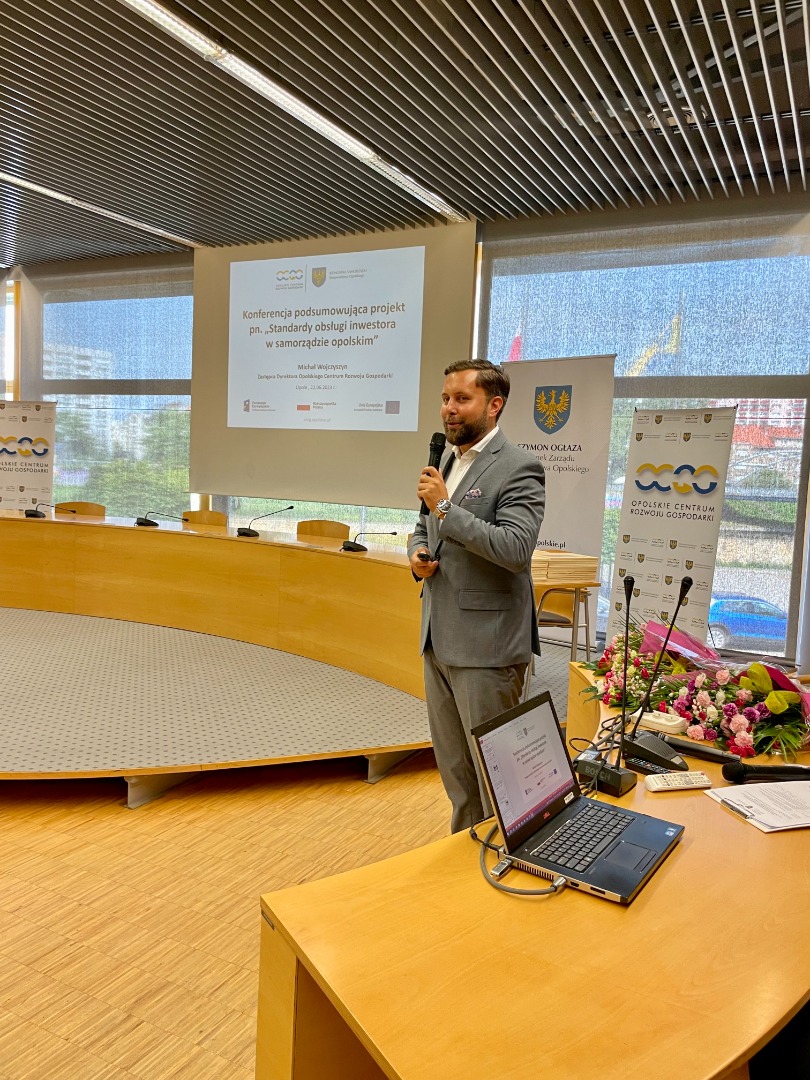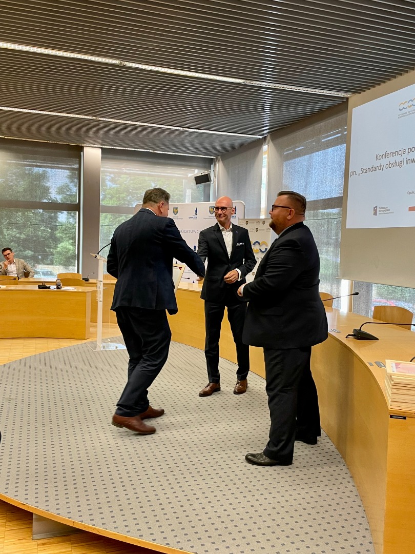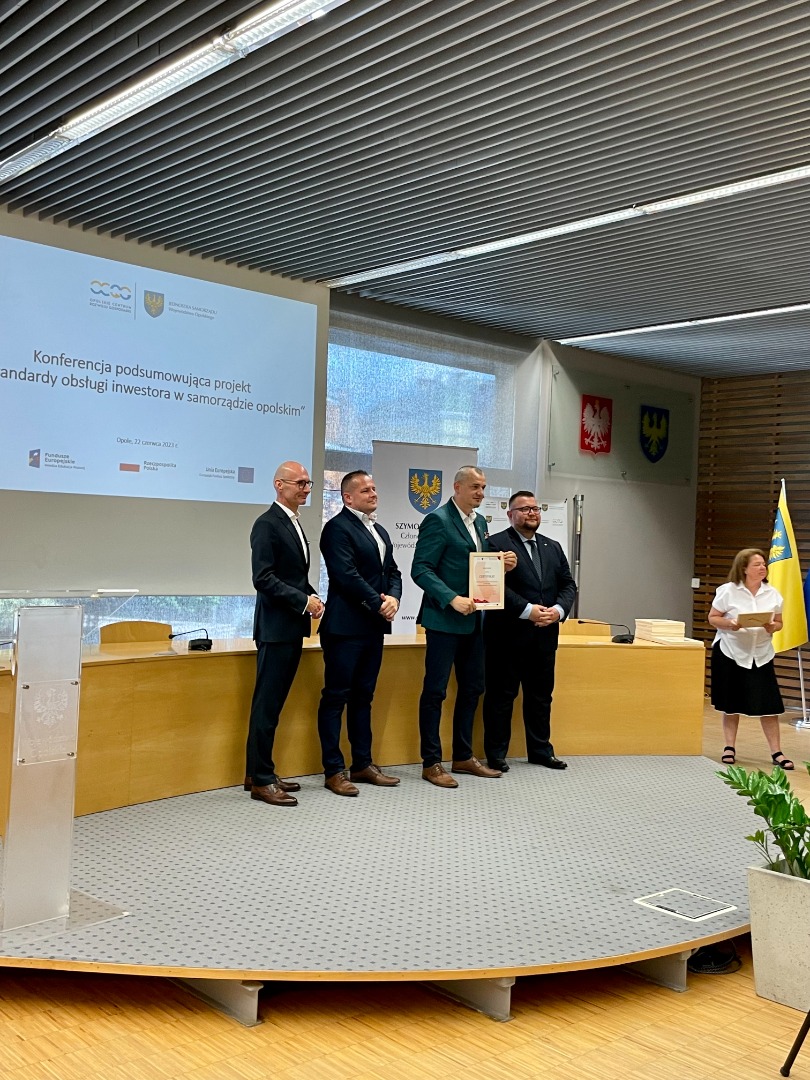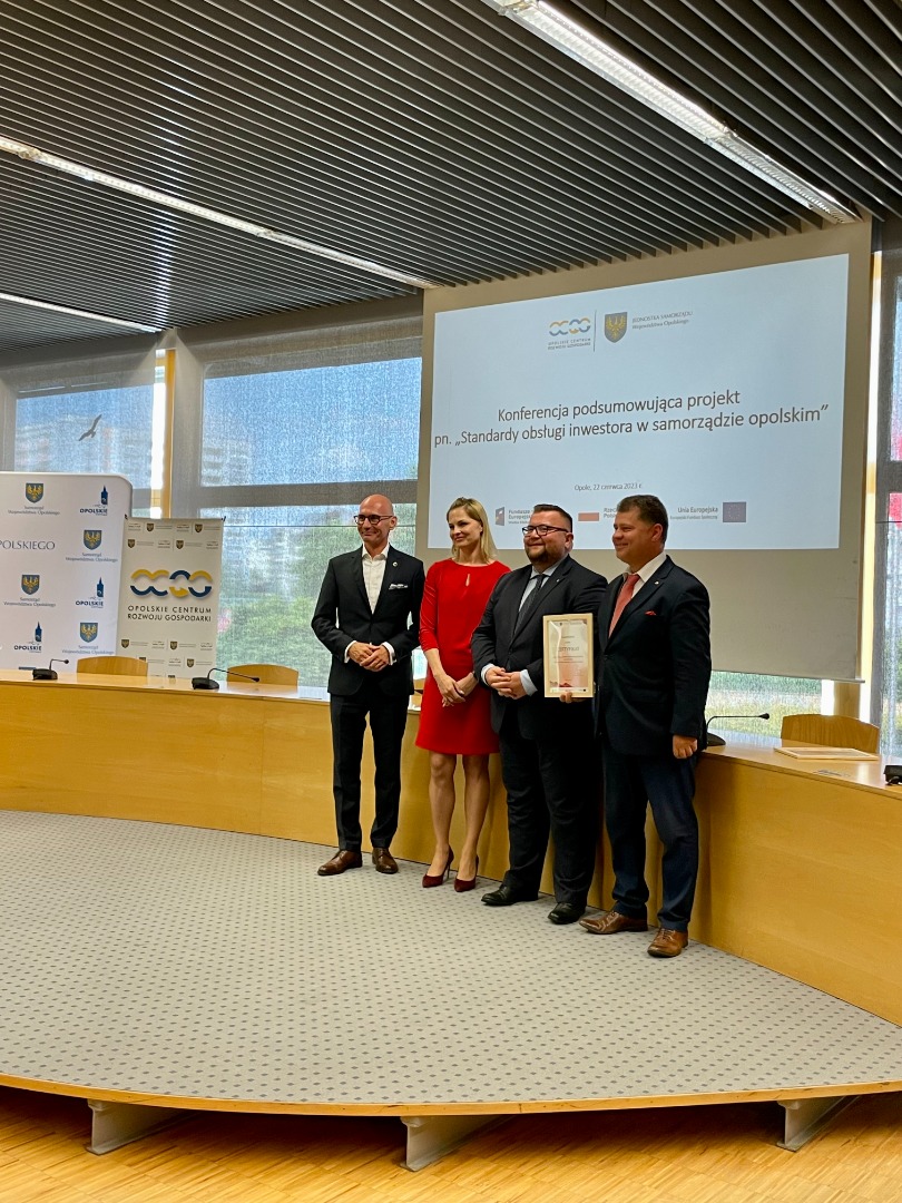 Udział w uroczystej konferencji podsumowującej wzięli Szymon Ogłaza, członek Zarządu Województwa Opolskiego, Tomasz Hanzel, dyrektor Opolskiego Centrum Rozwoju Gospodarki, Michał Wojczyszyn, z-ca dyrektora OCRG oraz przedstawiciele nagrodzonych jednostek samorządu terytorialnego.